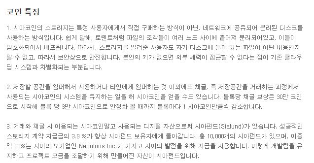 다른 코인들과는 다르게 시아코인은 상대적으로 많은 내용이 들어가있는 것을 볼 수 있습니다.