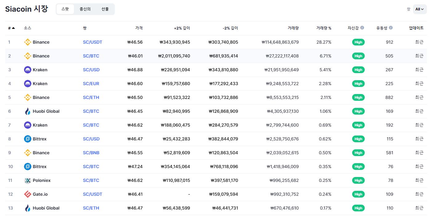 시아코인이 거래되고 있는 거래소도 상당합니다.